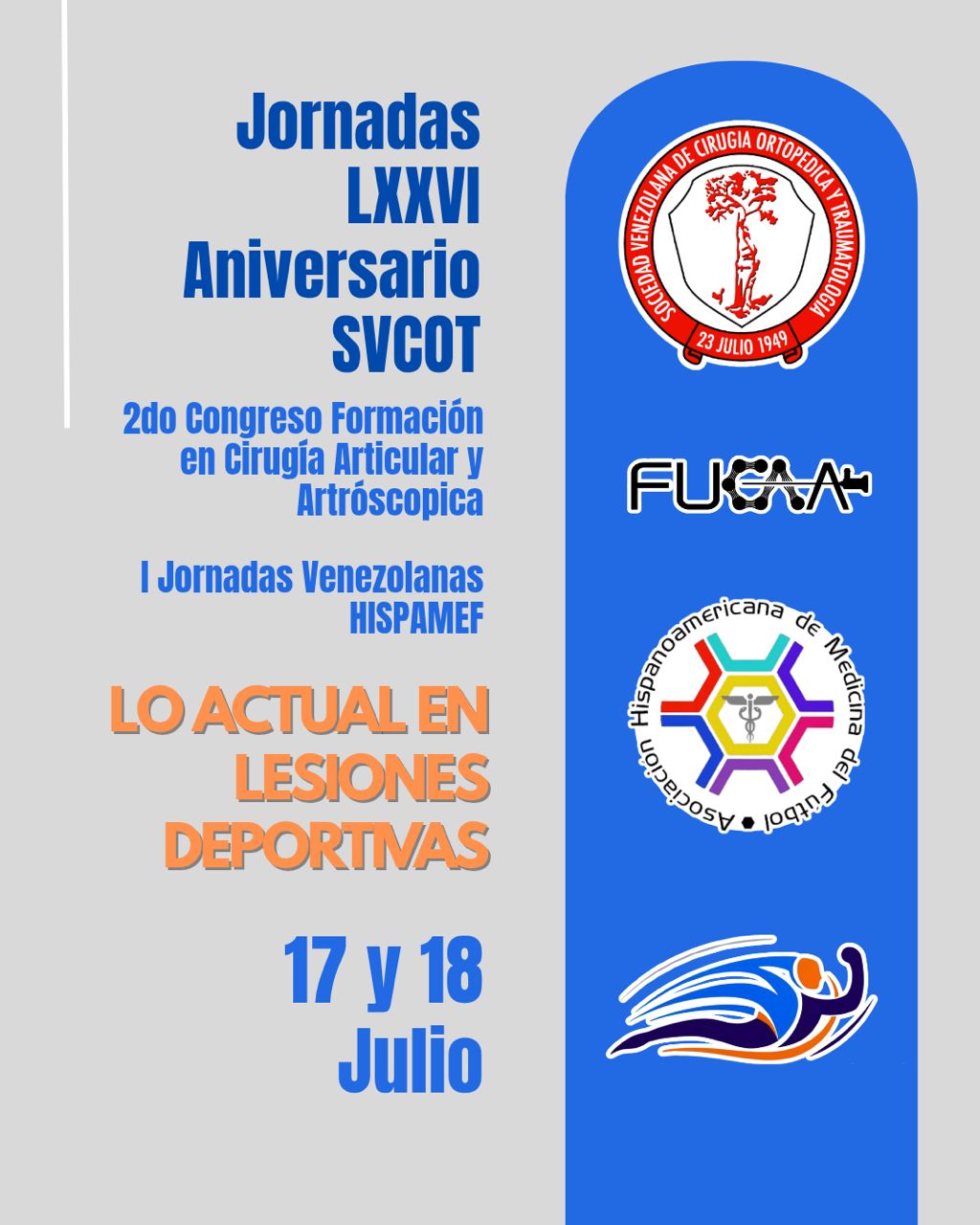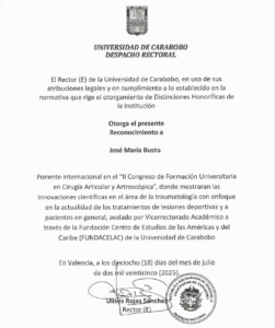 Hospital CEMA a través del Dr. José María Busto Villarreal, Jefe del Servicio de Cirugía Articular y Traumatología del Deporte del Hospital CEMA, participó como invitado internacional en las I Jornadas Venezolanas de HISPAMEF: “Lo actual en lesiones deportivas”, realizadas en coordinación con FUCAA (Formación en Cirugía Articular y Artroscopia) y la Sociedad Venezolana de Cirugía Ortopédica y Traumatología.