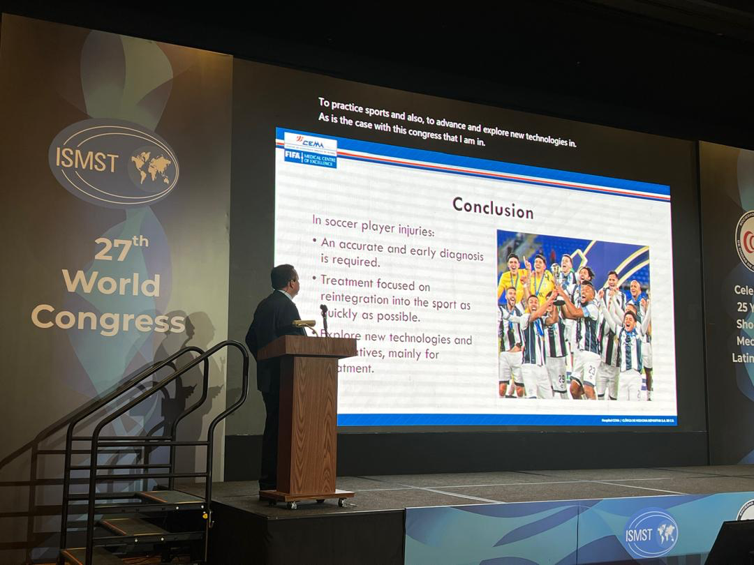 Hospital CEMA presente en el 27th World Congress ISMST, representando a Hospital CEMA nuestro Jefe del Servicio de Cirugía Articular y Traumatología Deportiva, el Dr. José María Busto Villarreal, participó como ponente internacional en el congreso “Passion & Science: Shockwave Therapy in Football Medicine”.